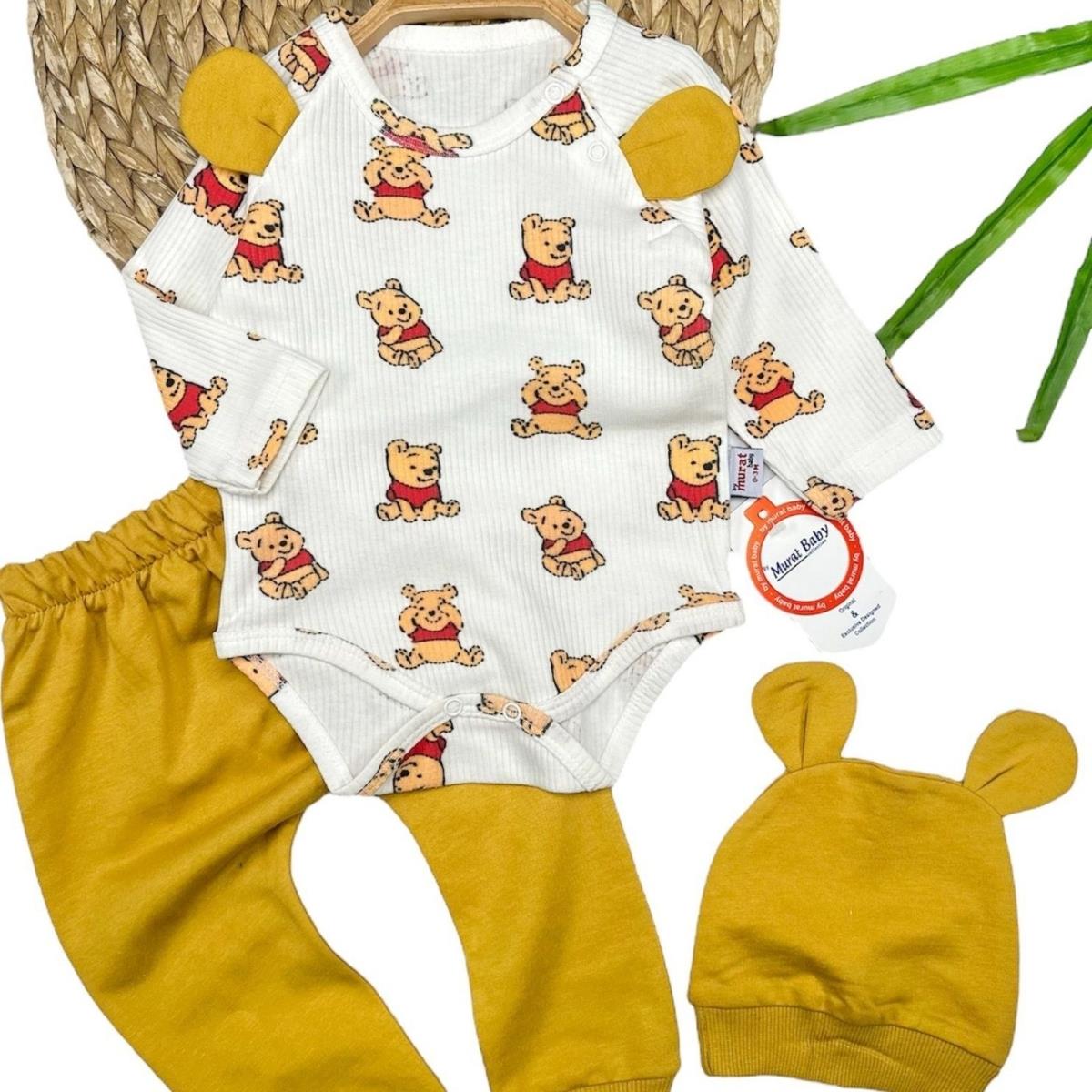BYMURAT 8343-UNİSEX 3/12 AY AYI POOH KULAKLI 2'Lİ TAKIM (128427)