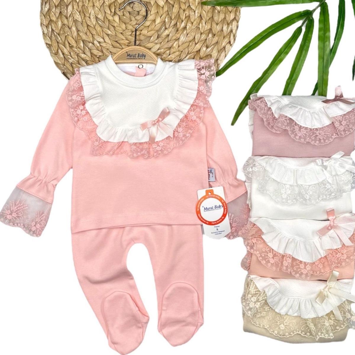BYMURAT 9705-KIZ 0/6 AY YAKA KURDELA DETAYLI 2Lİ TAKIM (128428)