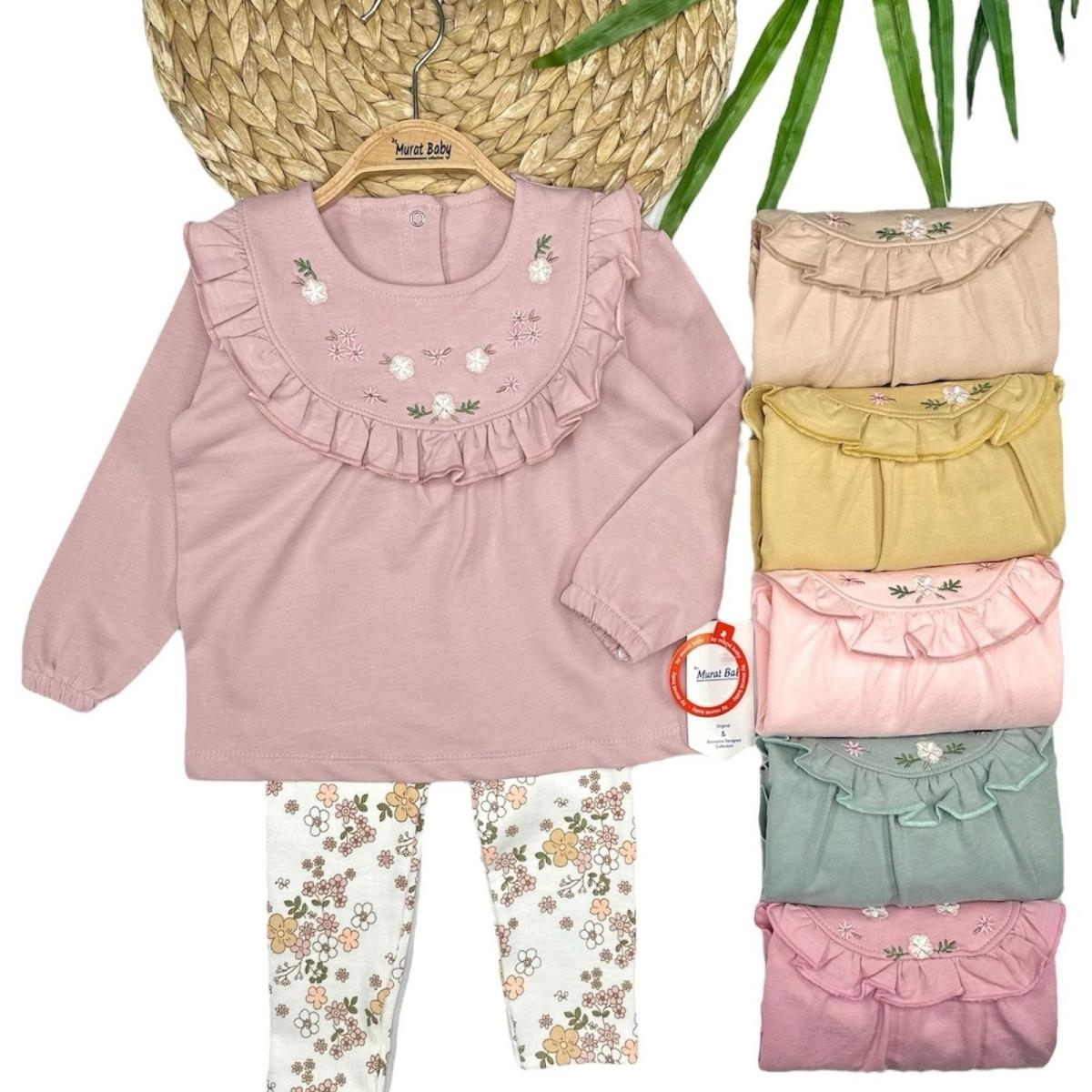 BYMURAT 9747-KIZ 2/5 YAŞ ÖNLÜK YAKA ÇİÇEK İŞLEMELİ 2Lİ TAKIM (128330)