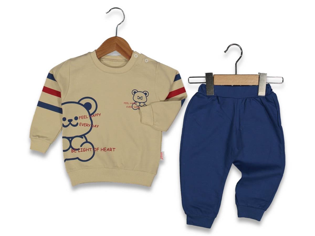ERKEK 9/18 AY ÇİZGİLİ KOLLU AYI BASKILI TAKIM (251593)