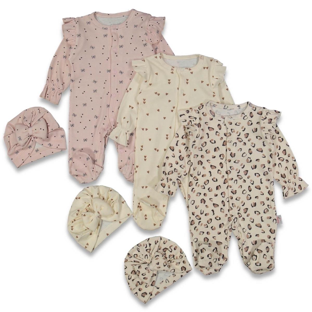 KIZ 0/3 AY LEOPAR KALP BASKILI ŞAPKALI 3LÜ TULUM (129200)
