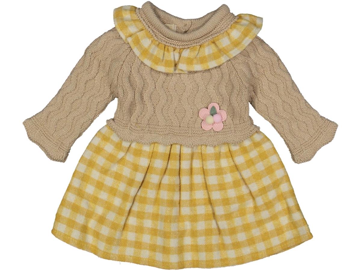 KIZ 6/18 AY ÇİÇEK AKSESUARI FIRFIRLI YAKALI ALT KARELİ ELBİSE (232136)