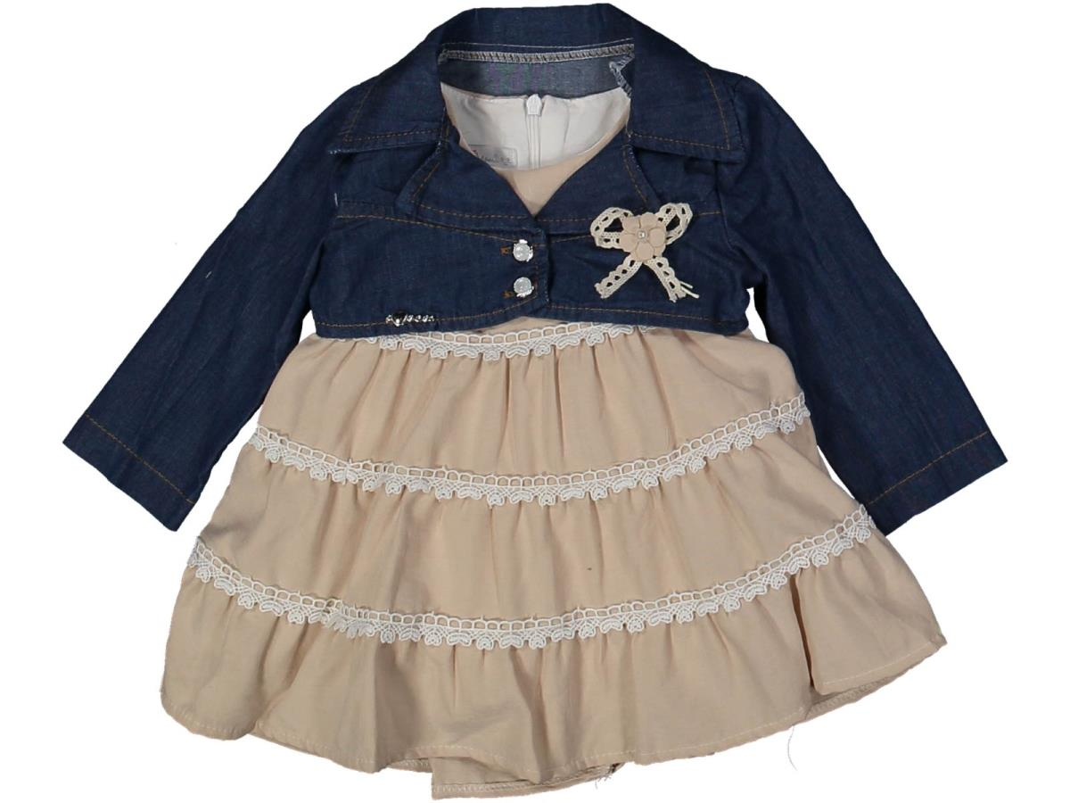 KIZ 6/24 AY ARA FİSTOLU KOT BOLEROLU ELBİSE (119892)