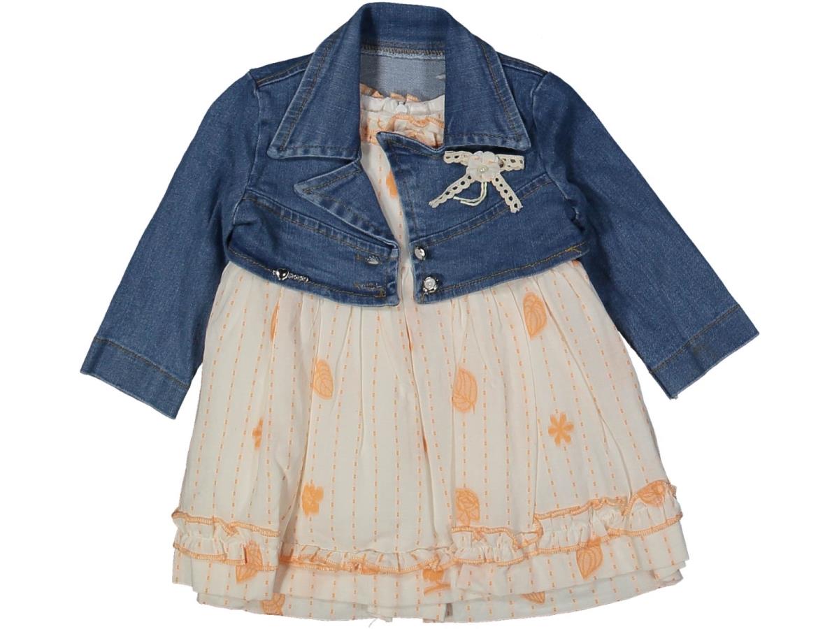 KIZ 6/24 AY KOT BOLEROLU ÇİZGİLİ ELBİSE (118662)
