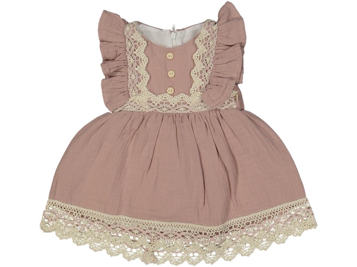 KIZ 6/24 AY MÜSLİN ŞERİTLİ ELBİSE (240463)