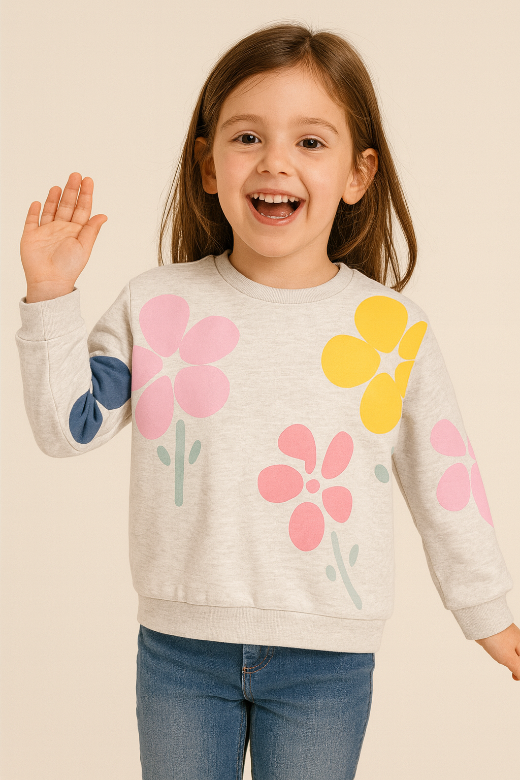 KIZ 7/10 YAŞ 3İP ÇİÇEK BASKILI SWEAT (249005)