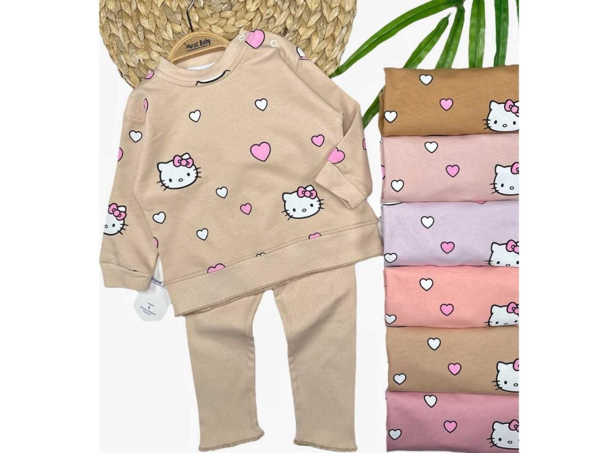 KIZ 9/24 AY SEVİMLİ KEDİ KALP BASKILI TAKIM (125280)