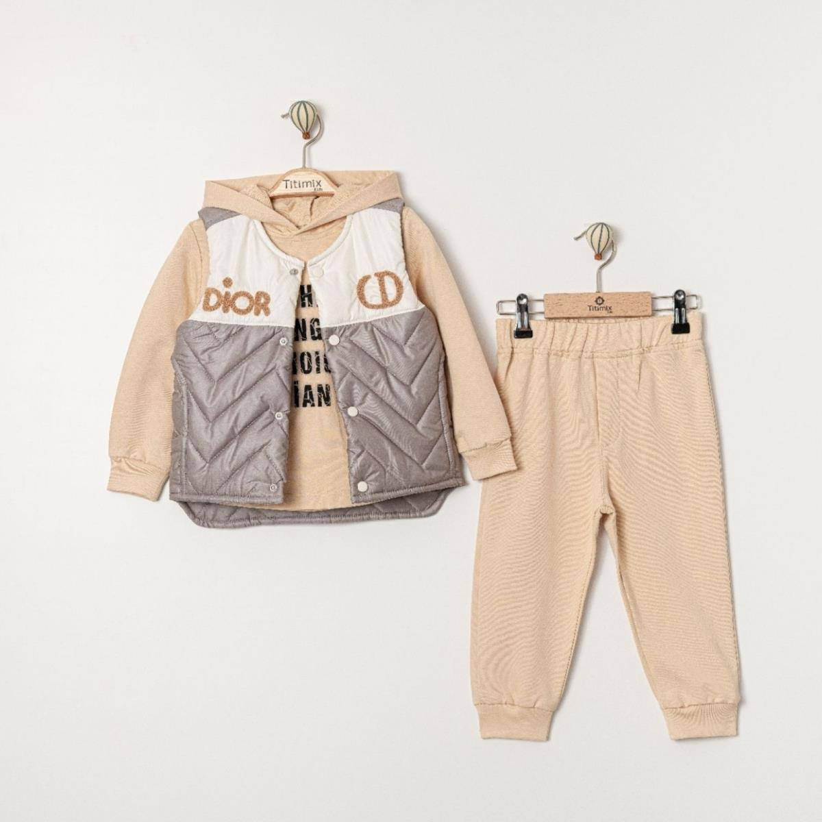 TİTİMİX KİDS 25315-ERKEK 9/24 AY DİOR NAKIŞLI ÜÇLÜ TAKIM (535084)