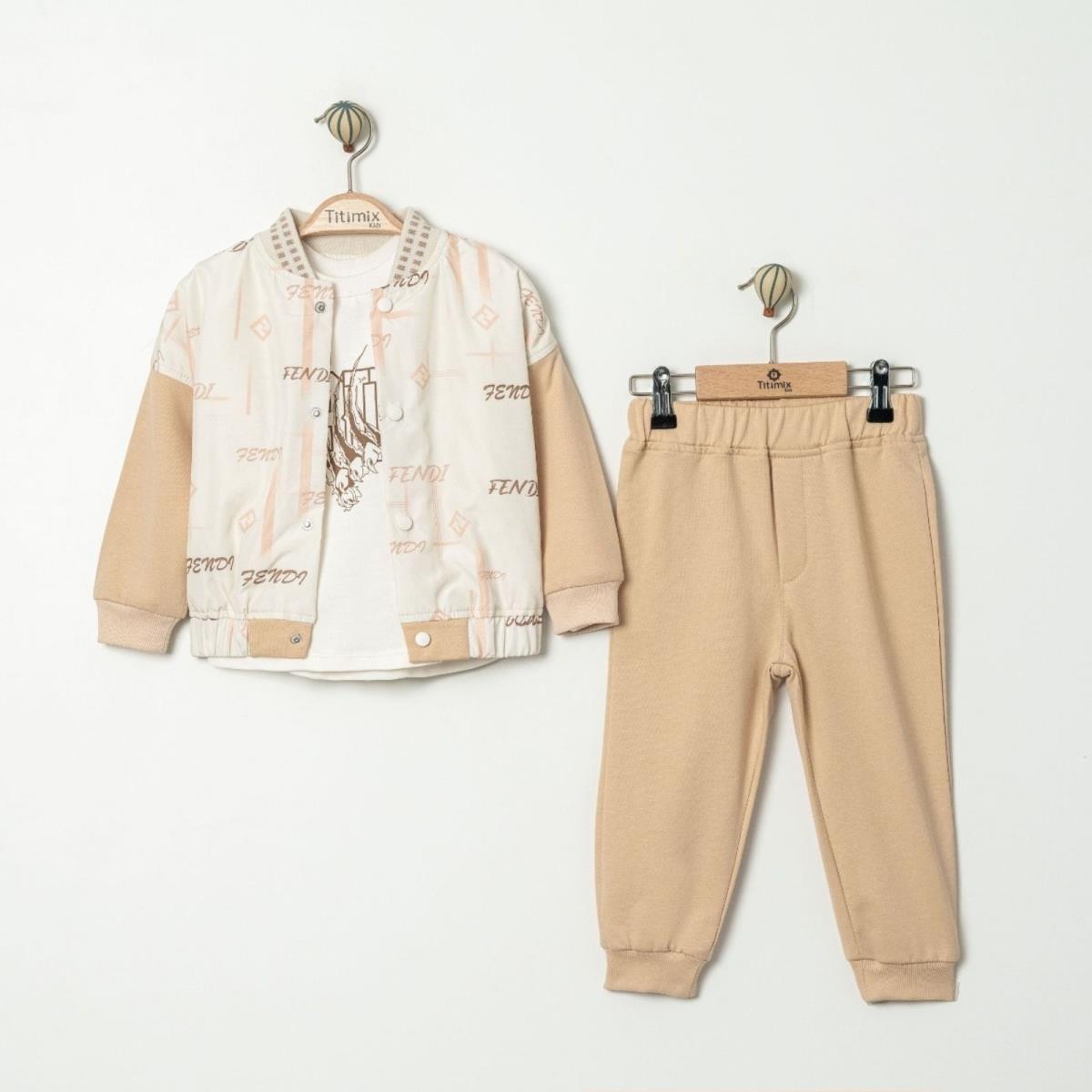 TİTİMİX KİDS 25331-ERKEK 2/5 YAŞ FENDİ CEKET DİJİTAL BASKI ÜÇLÜ TAKIM (535081)